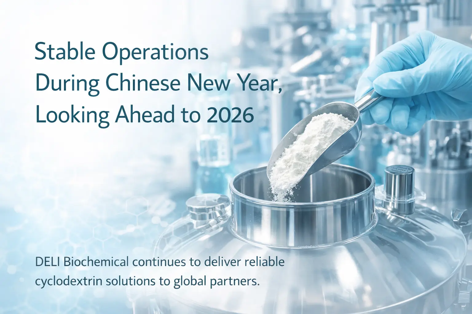 În timpul sărbătorilor recente de Anul Nou Chinezesc, DELI Biochemical a menținut operațiuni stabile și aprovizionare de încredere printr-o planificare atentă și un management responsabil al producției, reafirmându-și angajamentul față de calitate, siguranță și parteneriate pe termen lung, pe măsură ce compania intră în 2026.