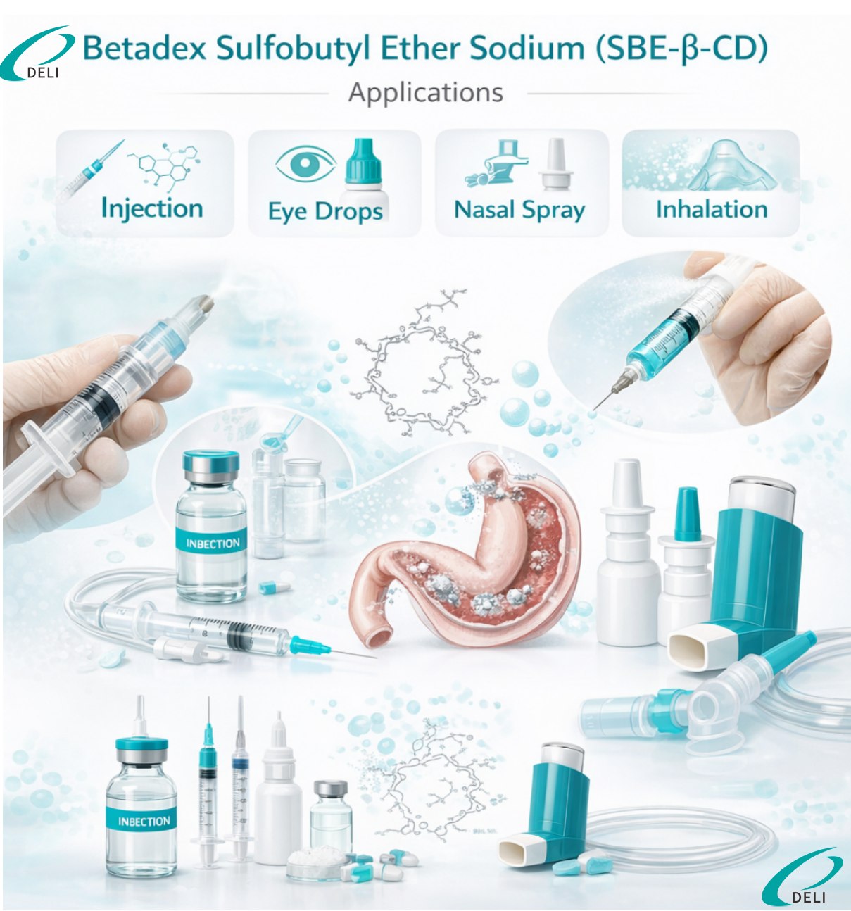 Betadex Sulfobutil Ether Sodium de grad injectabil este aplicat în principal în forme de dozare farmaceutică non-orale în care solubilitatea ridicată și siguranța sunt critice. Este utilizat pe scară largă în soluții injectabile pentru a îmbunătăți solubilitatea apoasă și pentru a menține claritatea și stabilitatea formulării în timpul depozitării și administrării.