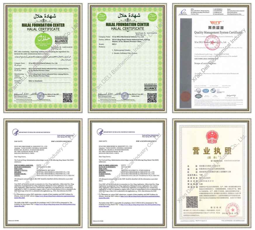 Xi’an DELI Biochemical Industry Co., Ltd. are peste 26 de ani de experiență în fabricarea ciclodextrinei și a derivaților de ciclodextrine. Compania se concentrează pe excipienți farmaceutici și oferă aprovizionare stabilă, calitate constantă și asistență tehnică profesională clienților din întreaga lume.